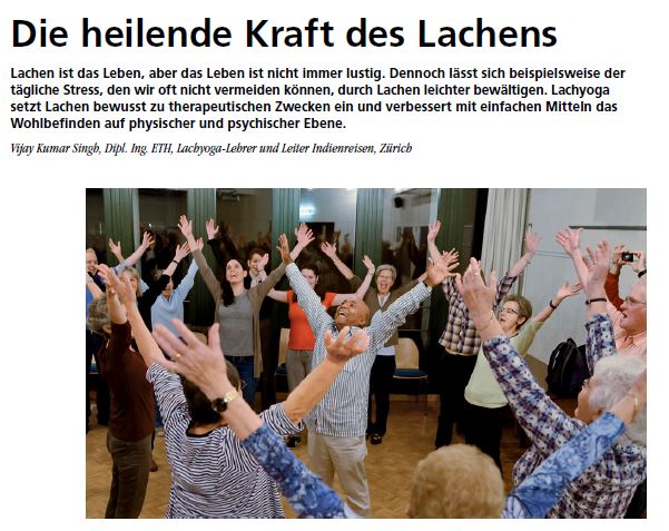 Wer mit den eintönigen Yoga-Lauten ohmmmmm, ohmmmmmm, ohmmmm nichts anfangen kann, darf es ruhig auch mal mit Lachyoga versuchen. Das macht Spass und heitert auf, sagt der schweizerisch-indische Lachyoga-Lehrer Vijay Kumar Singh.